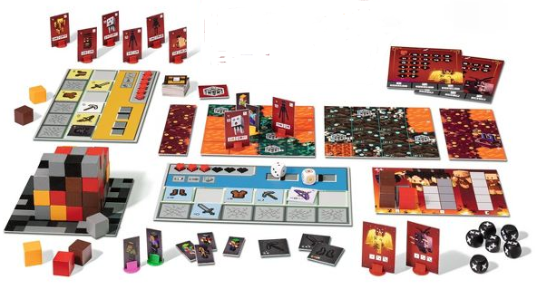 | Brown | Cover an obstacle | The player places a brown block directly onto any unoccupied obstacle space (lava, magma, or soul sand) on the gameboard, turning it into a regular space. If a player piece goes onto a covered space, it is placed directly on the brown block. Mobs are also allowed to move onto a covered space if it is along the shortest route toward a player. |