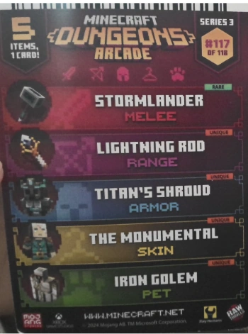 The Minecraft Dungeons Arcade cards are part of the Minecraft Dungeons Arcade game developed by Mojang and Raw Thrills, released in 2021. These cards are a key feature of the arcade experience, offering both physical collectibles and in-game functionality.
