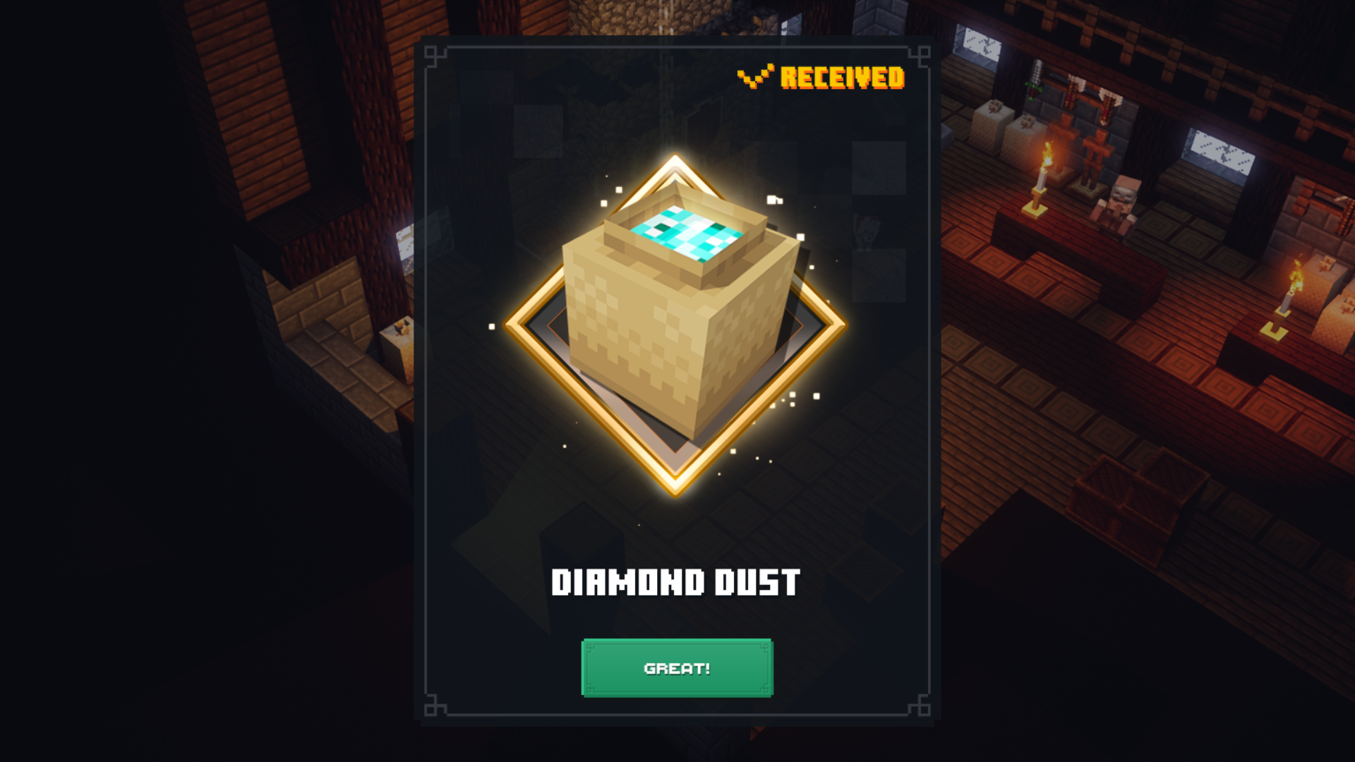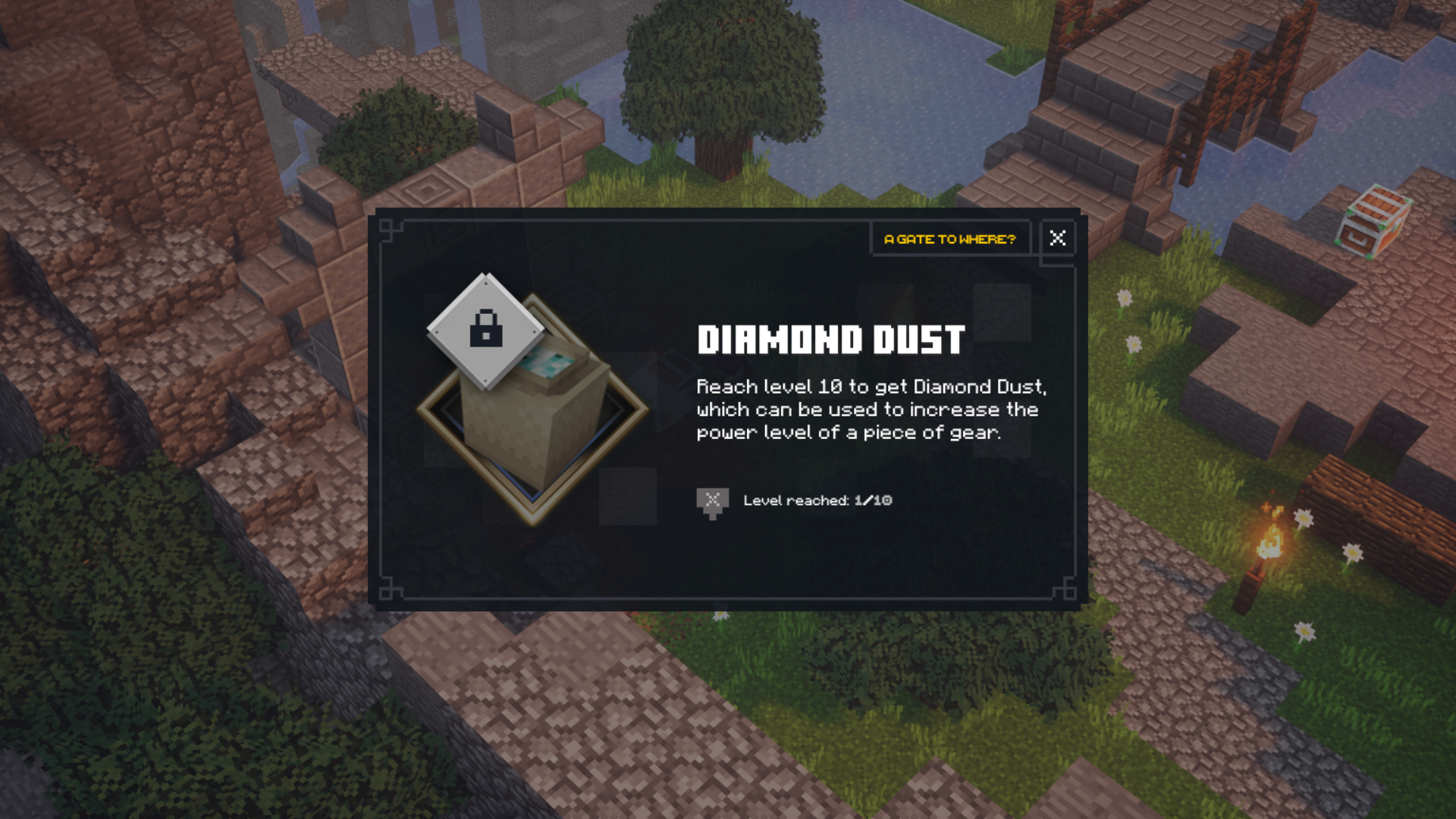 Although the Diamond Dust remains as an unused currency within the current version of Minecraft Dungeons it can still be found and used in the Minecraft Dungeons Alpha.