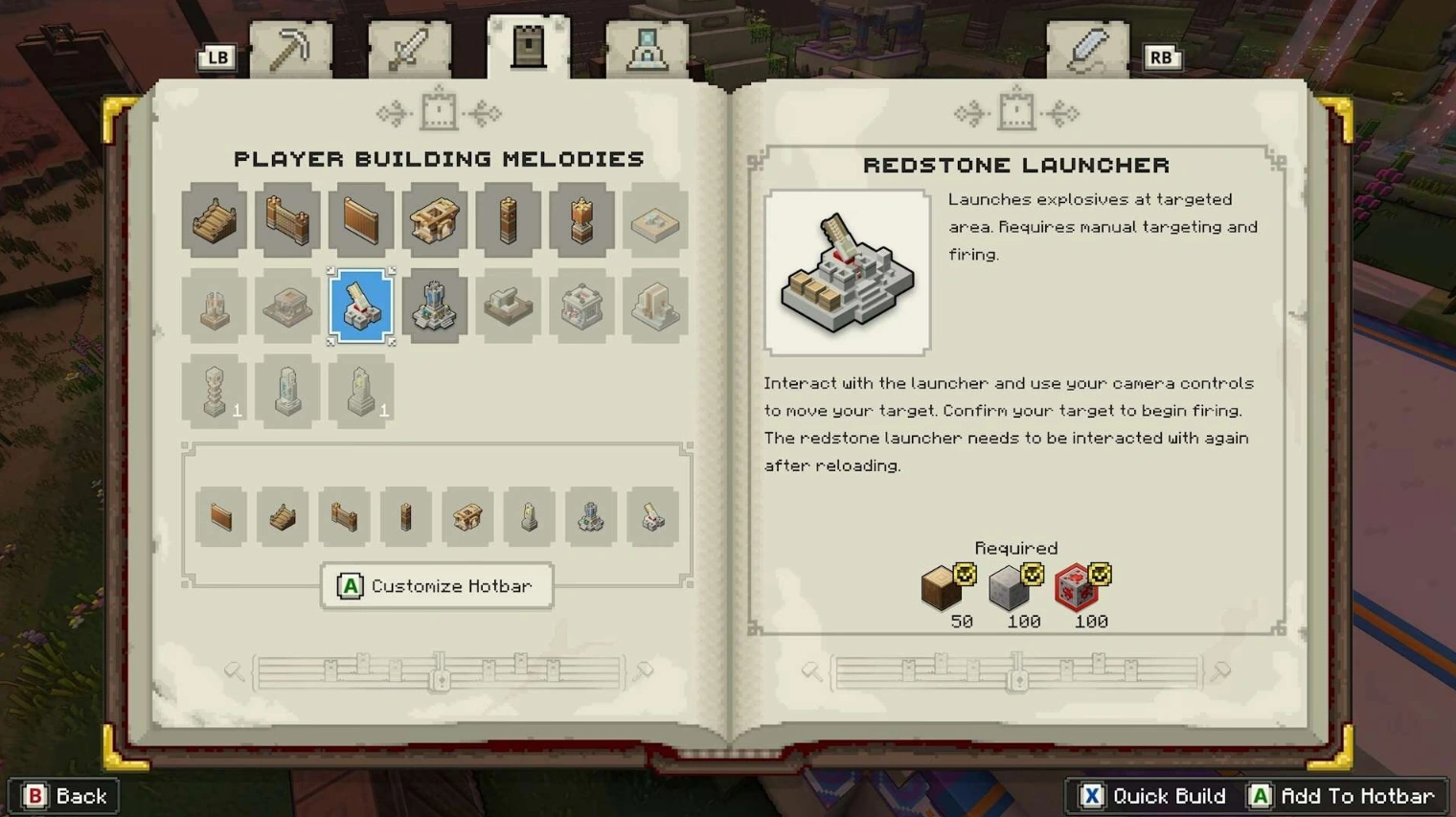A redstone launcher is an explosive defence that requires manual firing in Minecraft Legends.