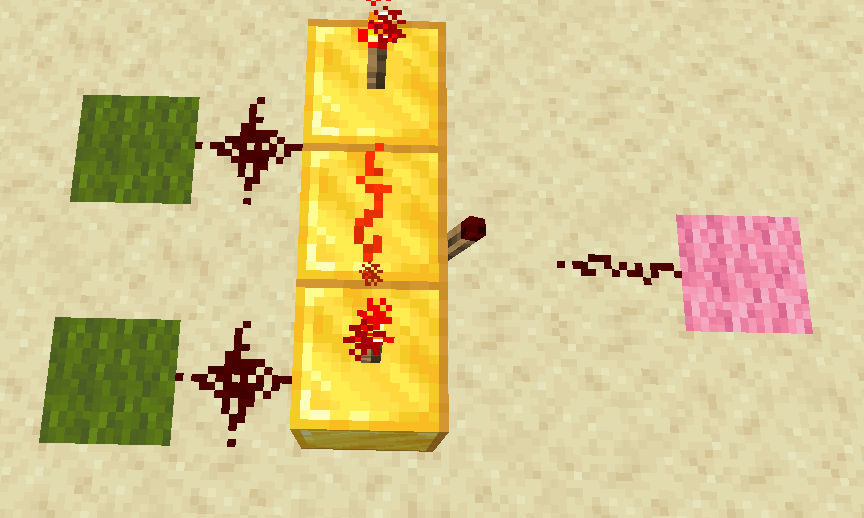 Treść tej podstrony pochodzi z artykułu „Redstone circuits/Logic/AND” w domenie minecraft.fandom.com na licencji CC BY-NC-SA 3.0