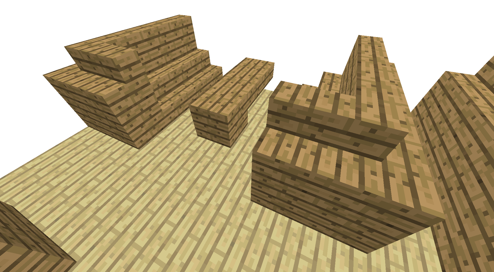 The oak wood slabs on Layer 1 is upside down. The oak wood stairs on Layer 1 face the table, while the oak wood stairs on Layer 2 face away from the table. Refer to the image if unsure how each stair is placed.