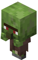 '''Zombie | '''Osadnik-zombie''' (ang. ''Zombie Villager'') to wariant [[zombie]], którego egzemplarze można przemienić w normalnych [[osadnik]]ów za pomocą [[złote jabłko|złotego jabłka]] i [[mikstura słabości|mikstury słabości]]. | ||