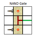 Bramka NAND jest przeciwieństwem bramki AND. Również potrzebuje dwóch wejść. Sygnał wyjścia jest wyłączony tylko, gdy oba wejścia są włączone. W innym przypadku wyjście będzie włączone.
