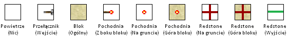 - Czerwony proszek może być położony na każdym bloku z wyjątkiem liści, szkła i kilku innych.