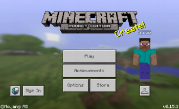 [[Plik:Menu główne w PE.png|thumb| | [[Plik:Menu główne w PE.png|thumb|461x461px|Menu główne Pocket Edition w wersji 0.15.3]] | ||