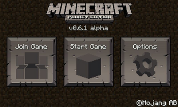 Pocket Edition posiada inaczej wyglądające menu główne niż to, znane z wersji komputerowej. Gracz do wyboru ma 8 opcji: