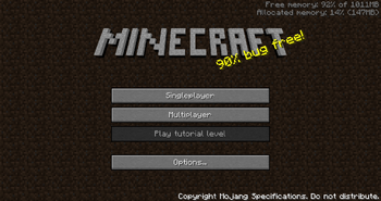 | Przycisk ''Play Tutorial Level''<br> zastąpiony przez ''Mods and Texture Packs'' | | Przycisk ''Play Tutorial Level''<br> zastąpiony przez ''Mods and Texture Packs'' | ||