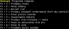 [[Plik:ListaSkrótówKlawiszowych.png|275px|thumb|right|Lista dostępnych skrótów klawiszowych, otwierana za pomocą klawiszy {{key|F3}} + {{key|Q}}]] | |||