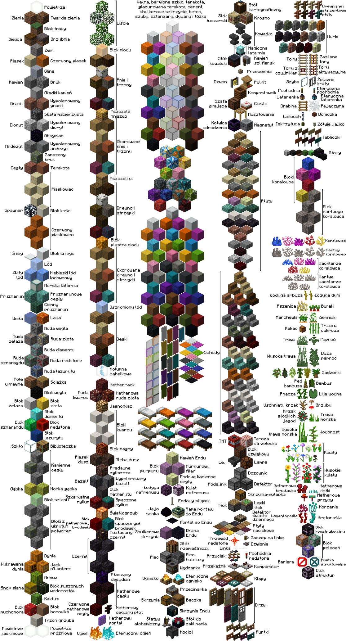 '''Blok''' jest podstawową jednostką z której zbudowany jest w [[Minecraft|Minecrafcie]] świat. Tworzą razem z [[byty|bytami]] całe otoczenie i mogą być wydobywanie i przetwarzane przez [[gracz]]a na wiele sposobów co stanowi istotę gry. Większość bloków jest statyczna, lecz istnieją również bloki ruchome, takie jak [[woda]], [[lawa]], [[ogień]] oraz [[portal]]. | '''Blok''' jest podstawową jednostką z której zbudowany jest w [[Minecraft|Minecrafcie]] świat. Tworzą razem z [[byty|bytami]] całe otoczenie i mogą być wydobywanie i przetwarzane przez [[gracz]]a na wiele sposobów co stanowi istotę gry. Większość bloków jest statyczna, lecz istnieją również bloki ruchome, takie jak [[woda]], [[lawa]], [[ogień]] oraz [[portal]]. | ||
